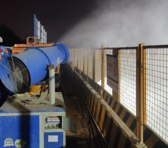 始終踐行綠色施工理念,加強施工揚塵和噪聲污染控制,啟用霧炮機、洗車槽、智能環境監測聯動噴淋系統并及時裸土覆蓋等等,充分避免產生施工揚塵。